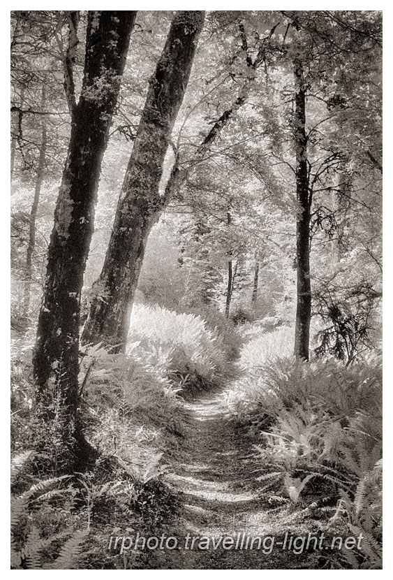 ©1995 Colin & Linda McKie A path winding through New Zealand bush, Canterbury 35mm Kodak HIE + red filter