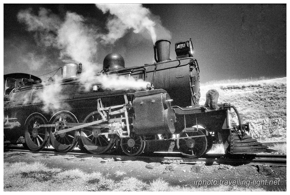 Steam locomotive A 428 on the Weka Pass Railway, a heritage railway line in North Canterbury