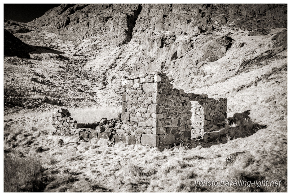 The ruins of Capel Tiberias, a chapel in the slate mining area of Cwmorthin, Blaenau Ffestiniog Gwynedd.