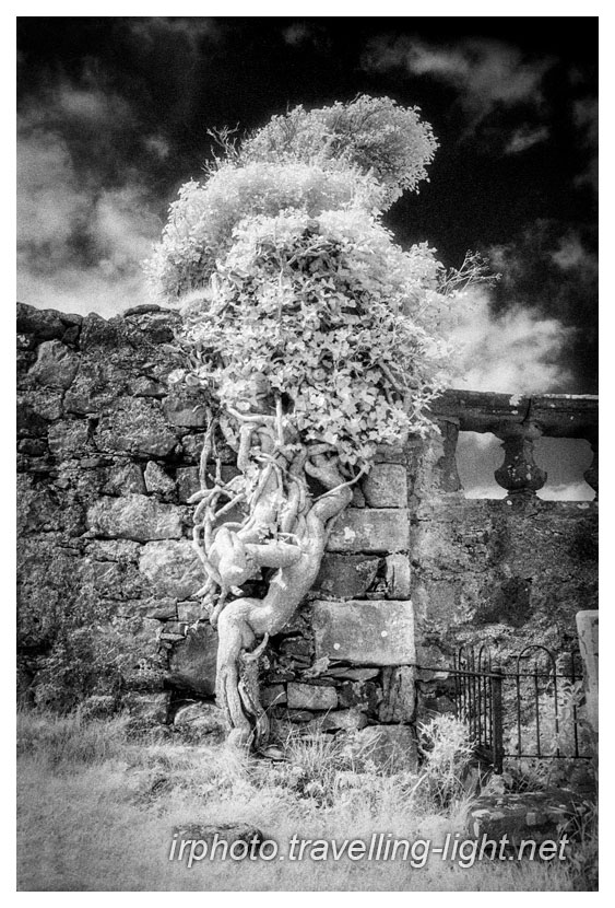 Tree growing against the wall of Kilchrist or Cill Chriosd, a ruined church near Broadford, on the Isle of Skye.